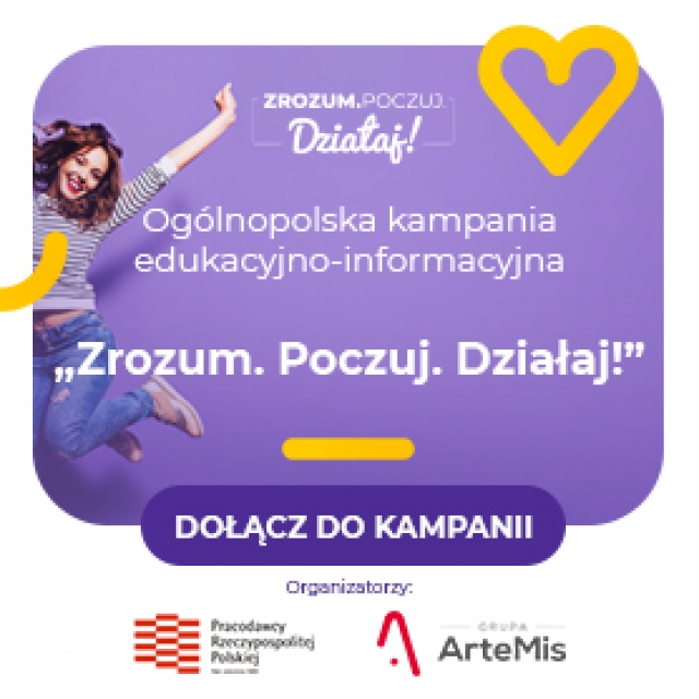 "Zrozum. Poczuj. Działaj!" to ogólnopolska kampania edukacyjno-informacyjna, wspierająca zdrowie psychiczne i emocjonalne pracowników i pracodawców.
