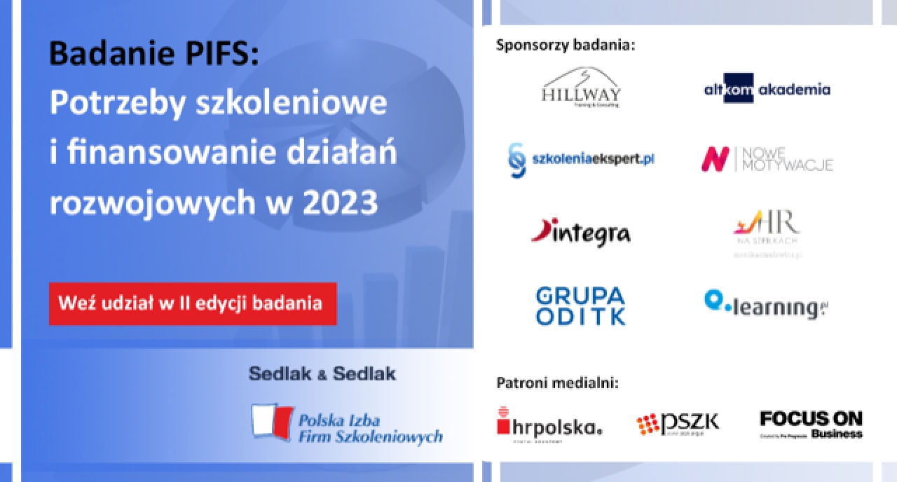 Polska Izba Firm Szkoleniowych zaprasza Klientów firm szkoleniowych  – przedstawicieli HR i managerów - decydentów zakupu szkoleń i usług rozwojowych do udziału w drugiej edycji unikatowego zamkniętego badania Polskiej Izby Firm Szkoleniowych ,,Potrzeby szkoleniowe i finansowanie działań rozwojowych w 2023”.